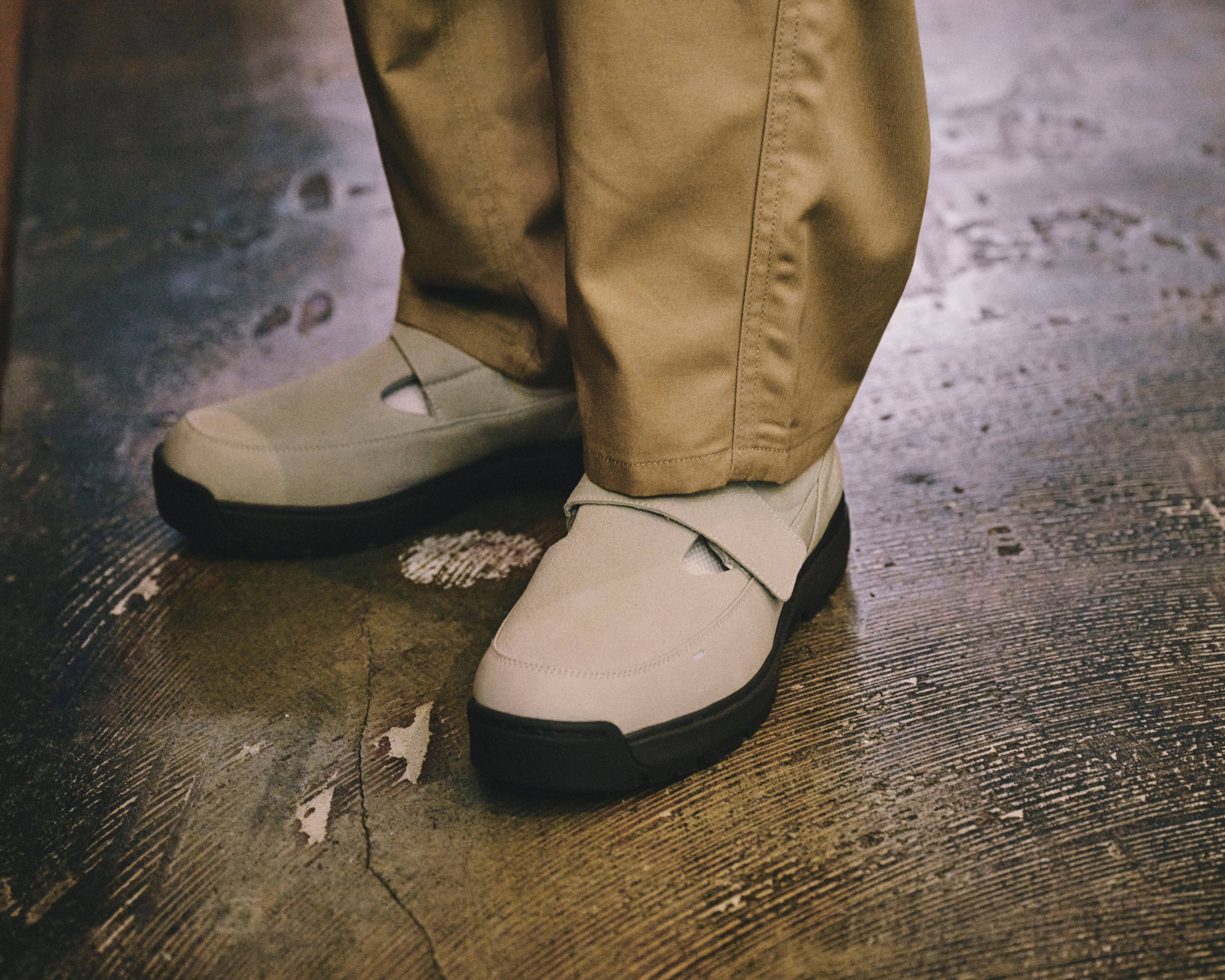 ルーツモデルの機能性を基に、トラッドな佇まいに整えた T-ストラップタイプ。