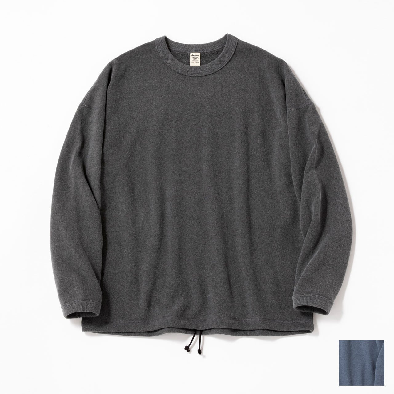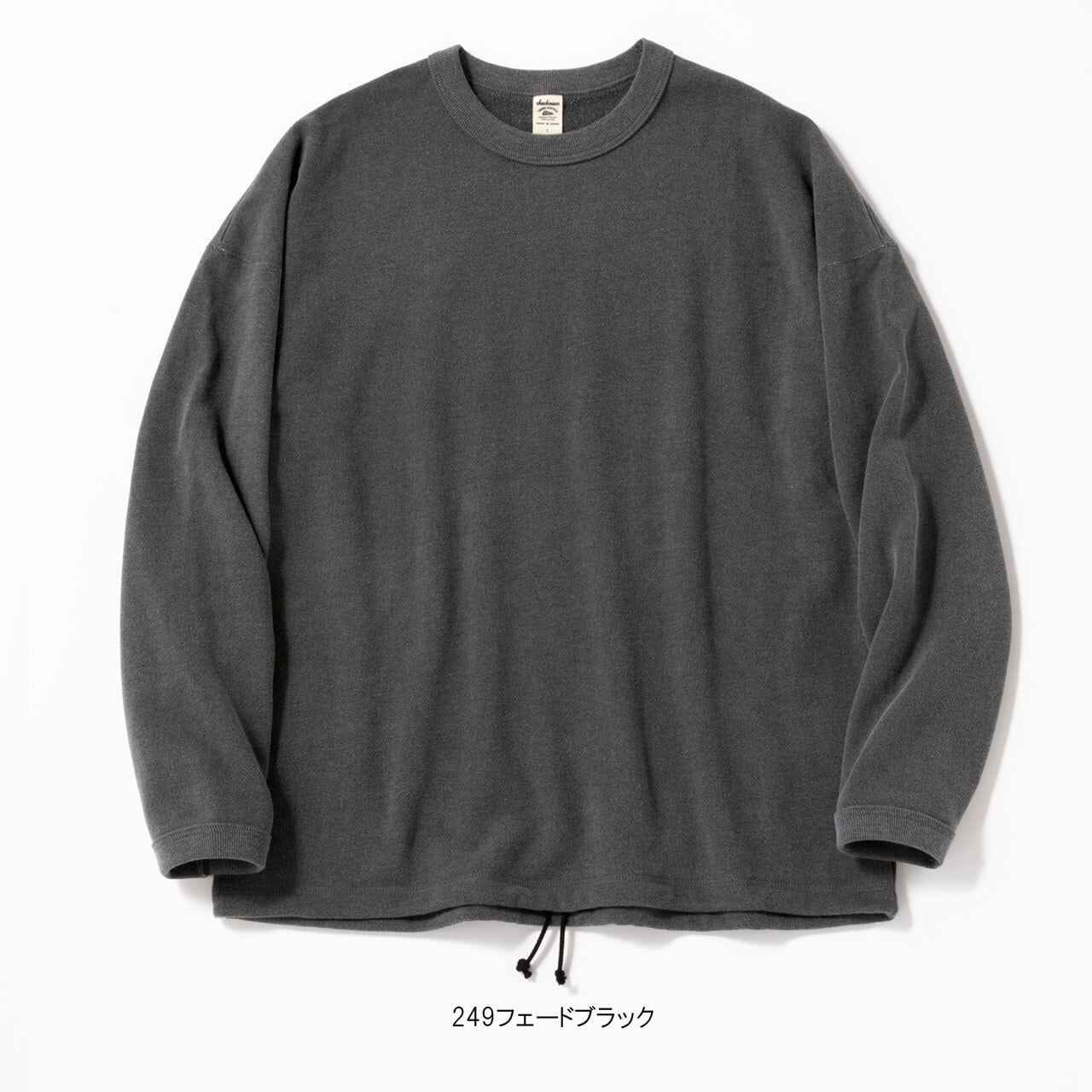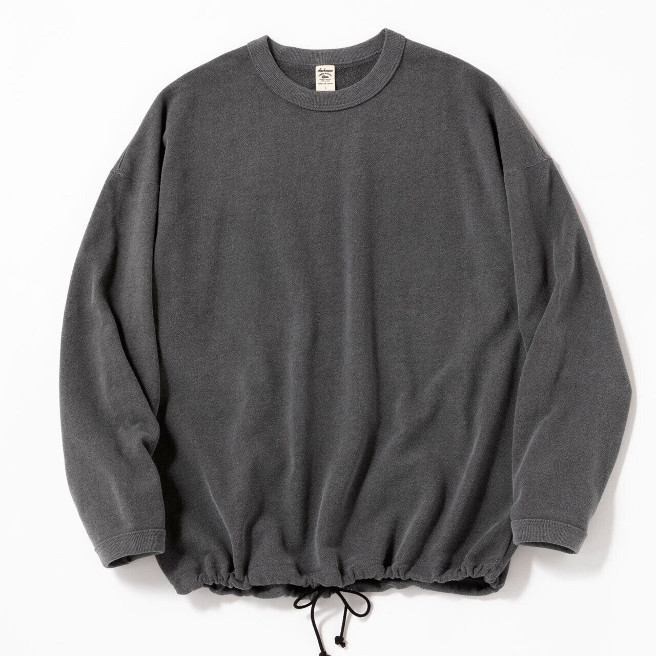 The medium-weight 30/10 fleece is pigment printed and washed to create a faded look. This material expresses a classic atmosphere with an environmentally friendly process that does not use dyes. Fading takes more time and effort than dye processing. The unique icon "HIMO" design. The HIMO/string at the hem not only adjusts the silhouette, but also prevents the hem from becoming sagging, allowing you to wear it for a long time.