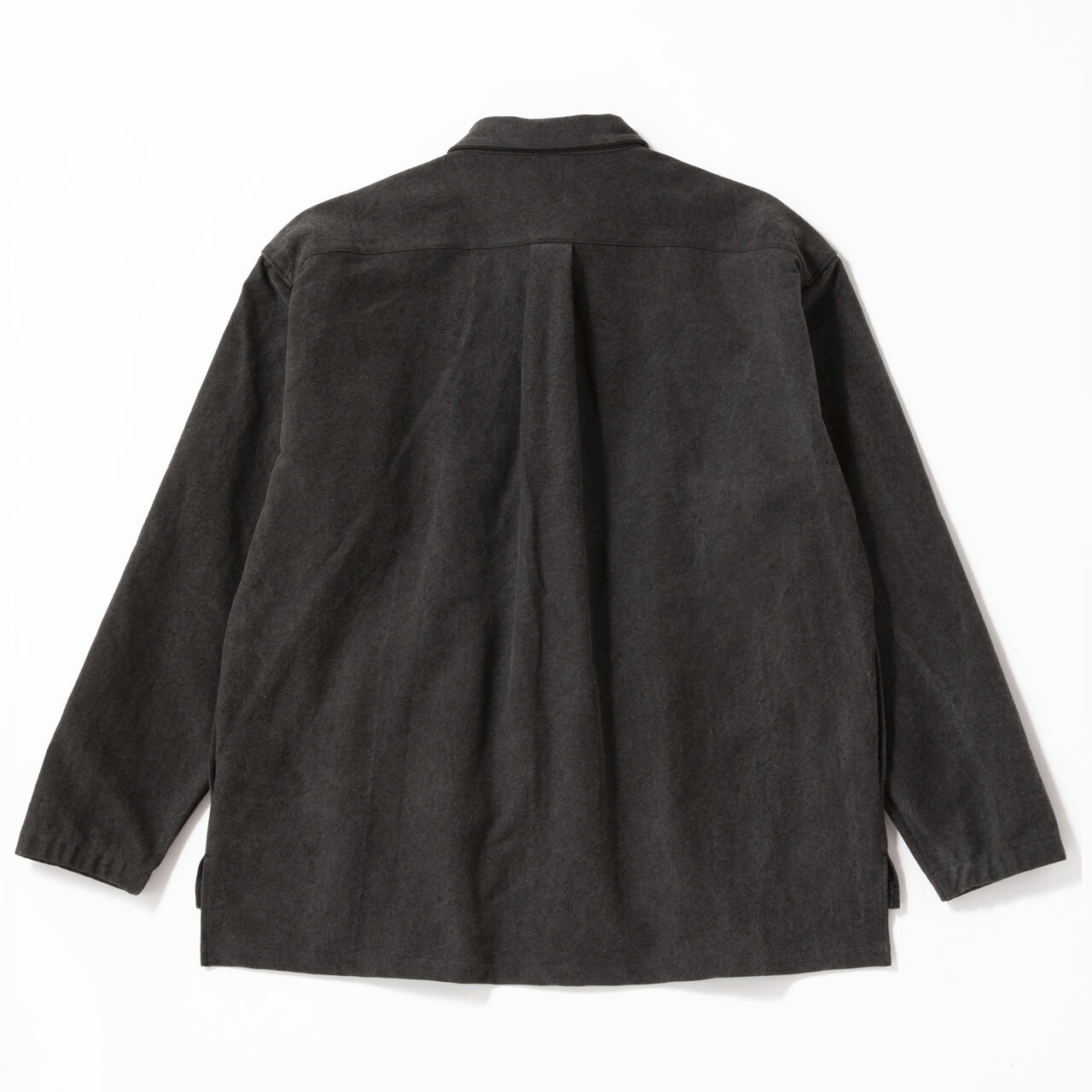 今回リリースするこの炭染め素材はぼやけた表情を出すために起毛後の染色加工というアナログでノスタルジックな方法を採用。