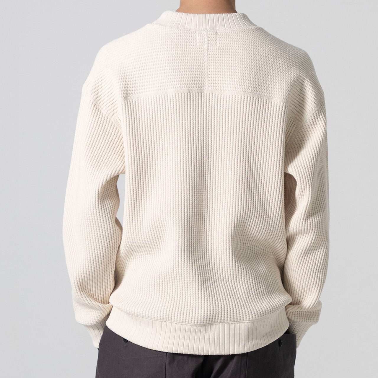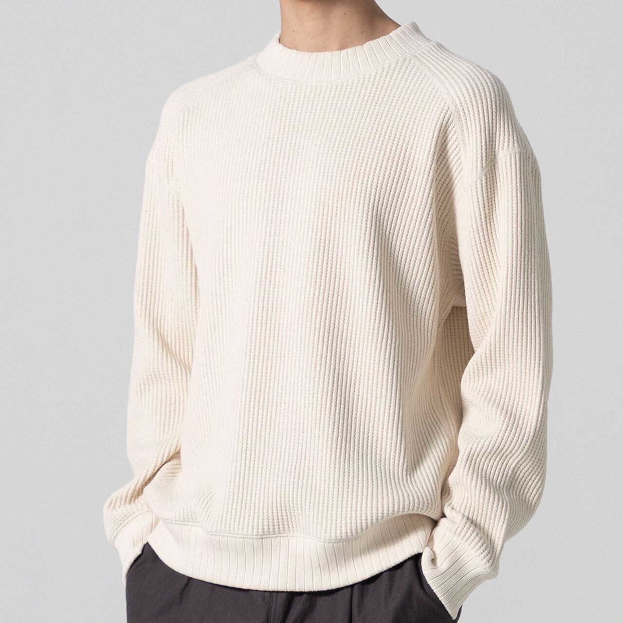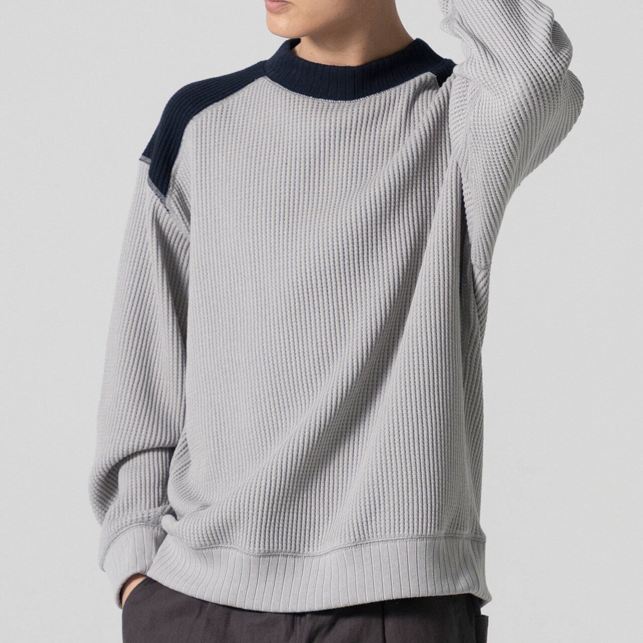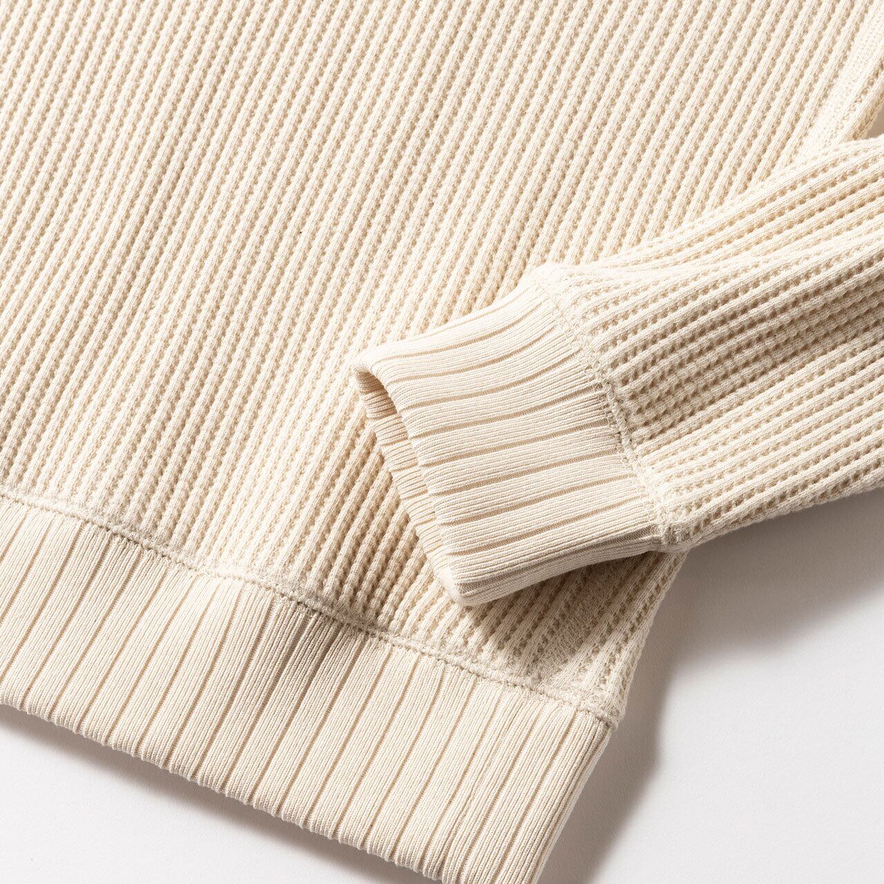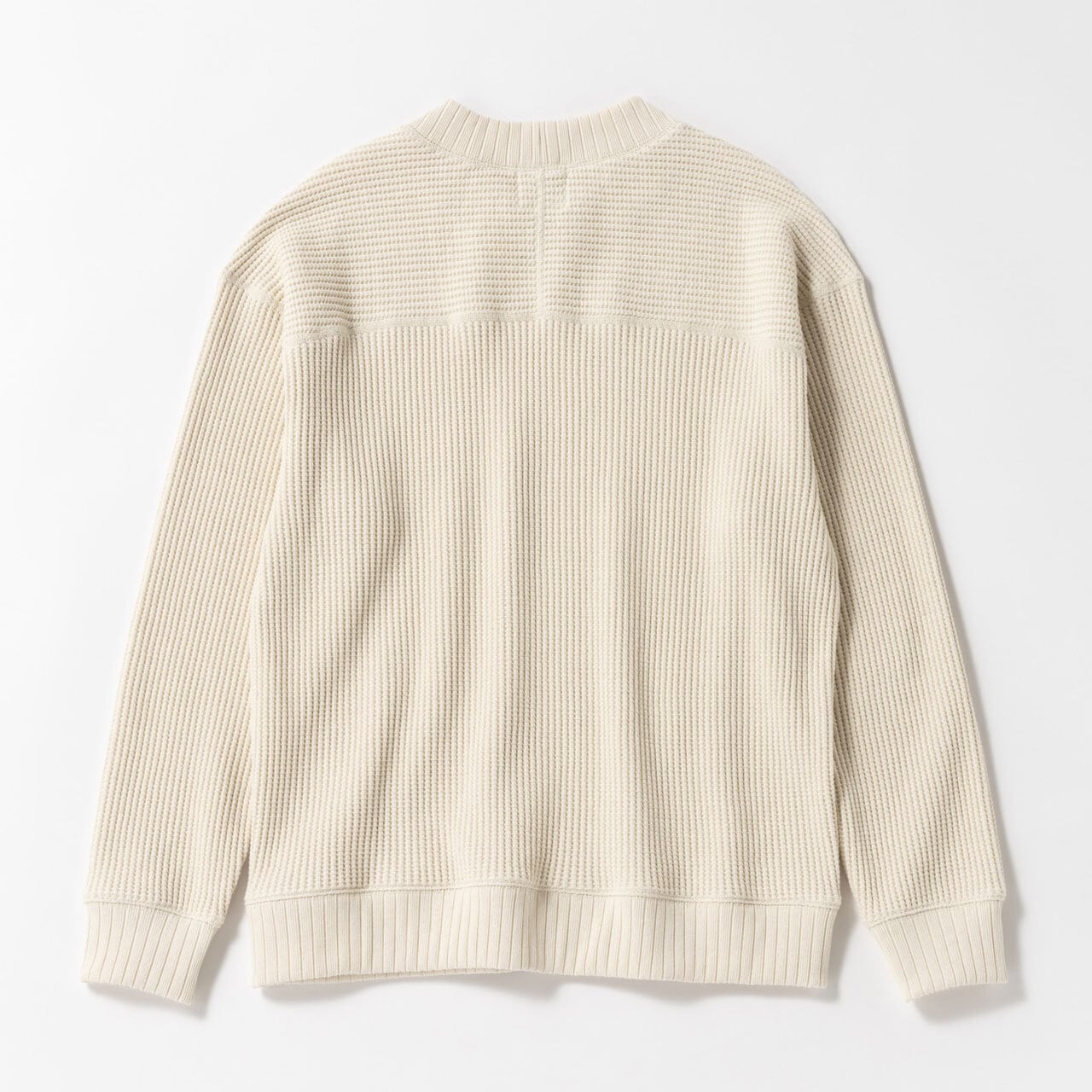 2016年の開発当初は首元、袖口,裾に極太リブを使用して、見映えの良い、温かいサーマル組織のインナーをテーマにリリースしたワッフルミッドネックですが、10年のときが経ち秋の気温や着用の変化を考え1枚で着用することを基本に設計を見直しました。