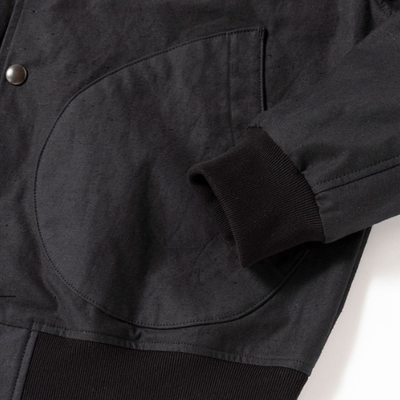 生地を製造する際、レピア織機の強度を調整しながらネップ(糸の節)を残し、糸に強さを加えながら織り上げたバックネップ素材のアワードジャケットです。