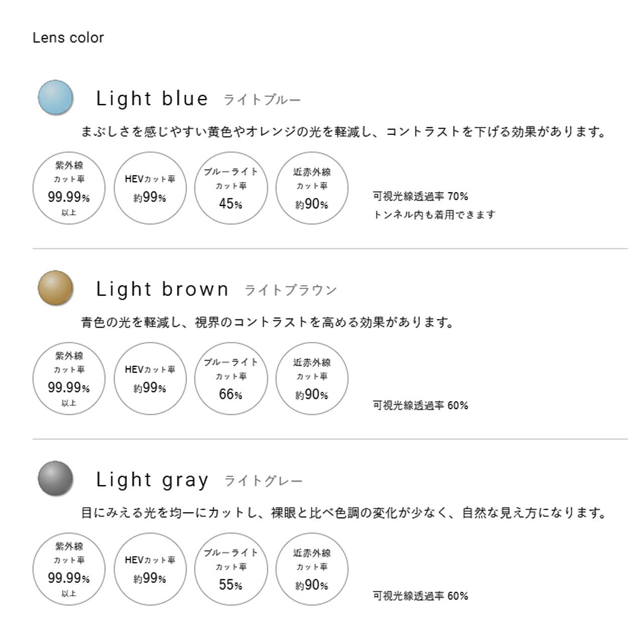 レンズの材質:プラスチック(ポリカーボネイト、耐傷性特殊コート、裏面マルチコート)
