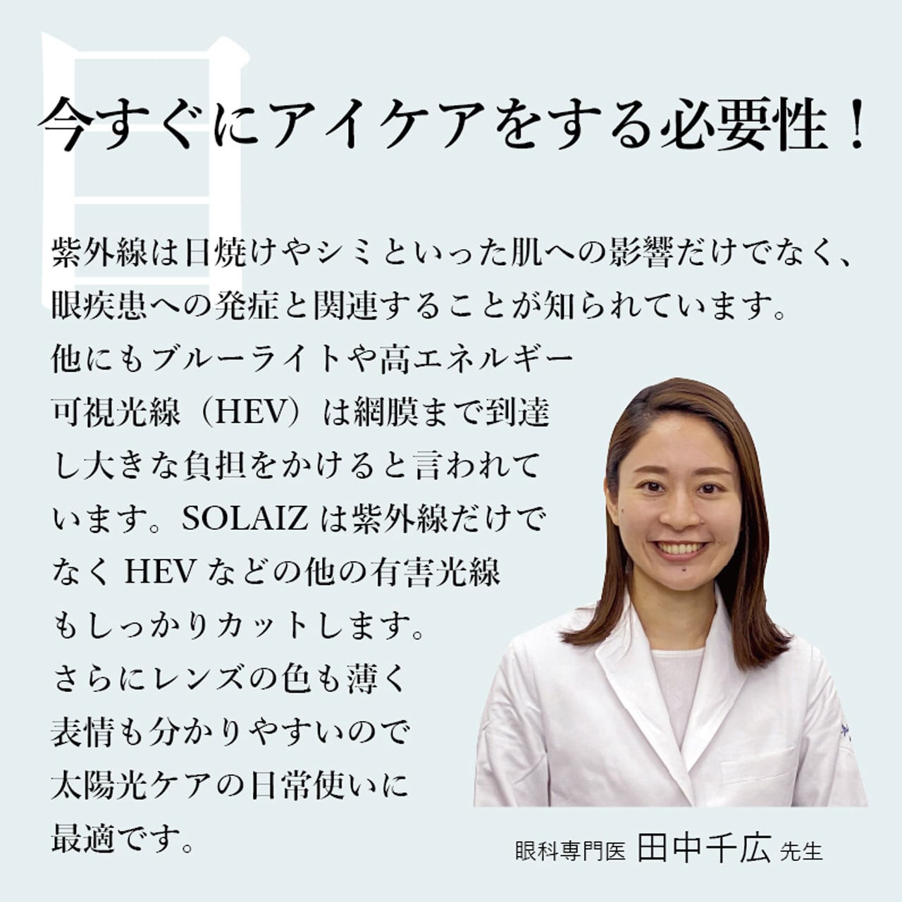 SOLAIZの開発は、「皆様の眼を守りたい」という熱い想いからスタート。