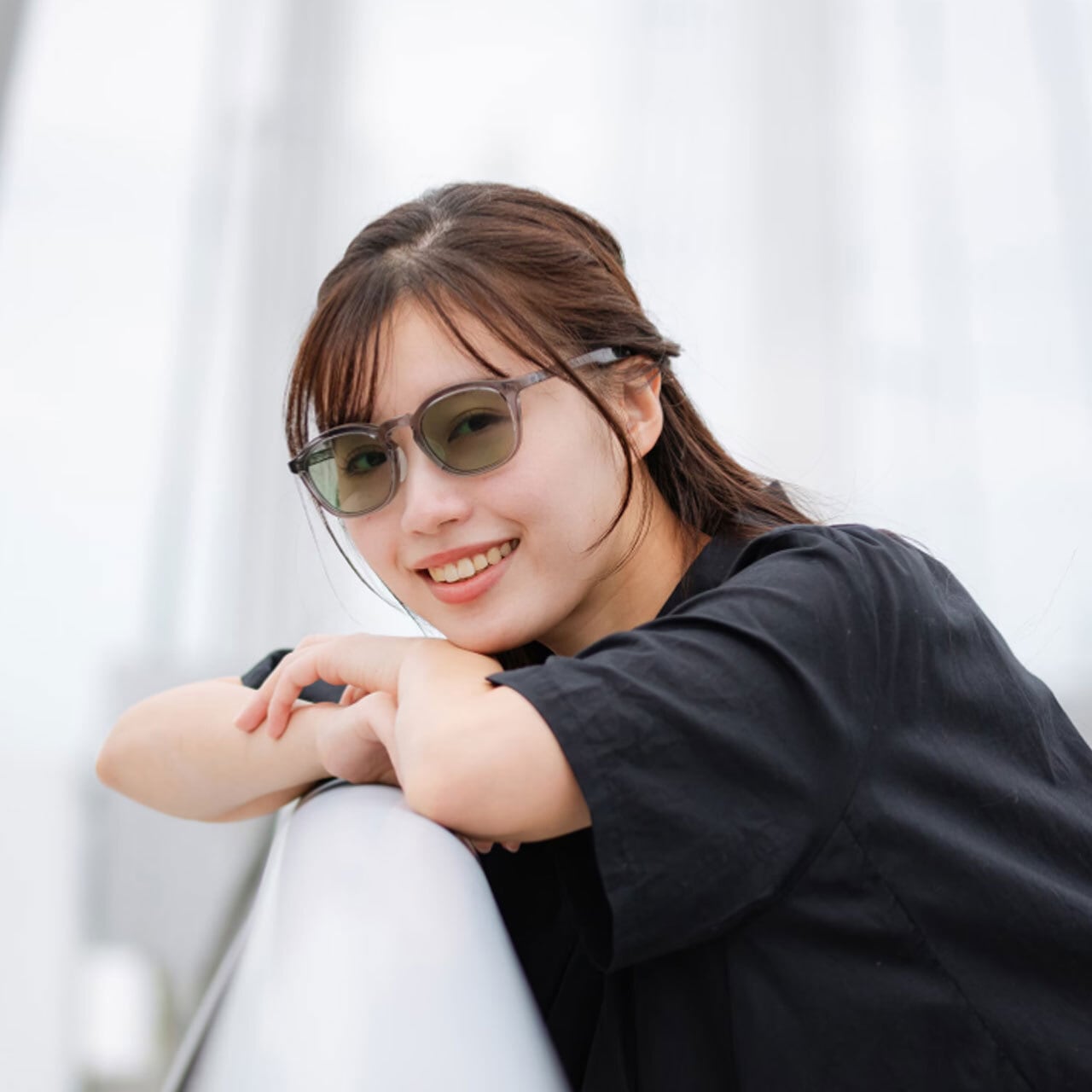レンズ上部は丸く、下部は直線で構成された形状は、柔らかさと知的さを併せもつ独特なスタイルです。
