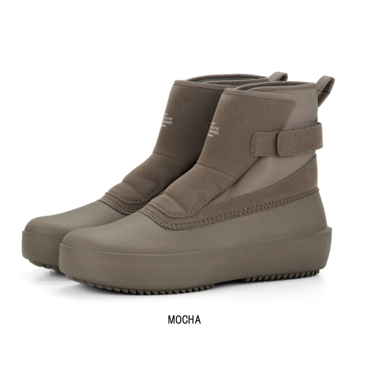 着脱が簡単なアッパー構造と、軽量で防水性のある立体成型EVAのソールを組み合わせた仕様。