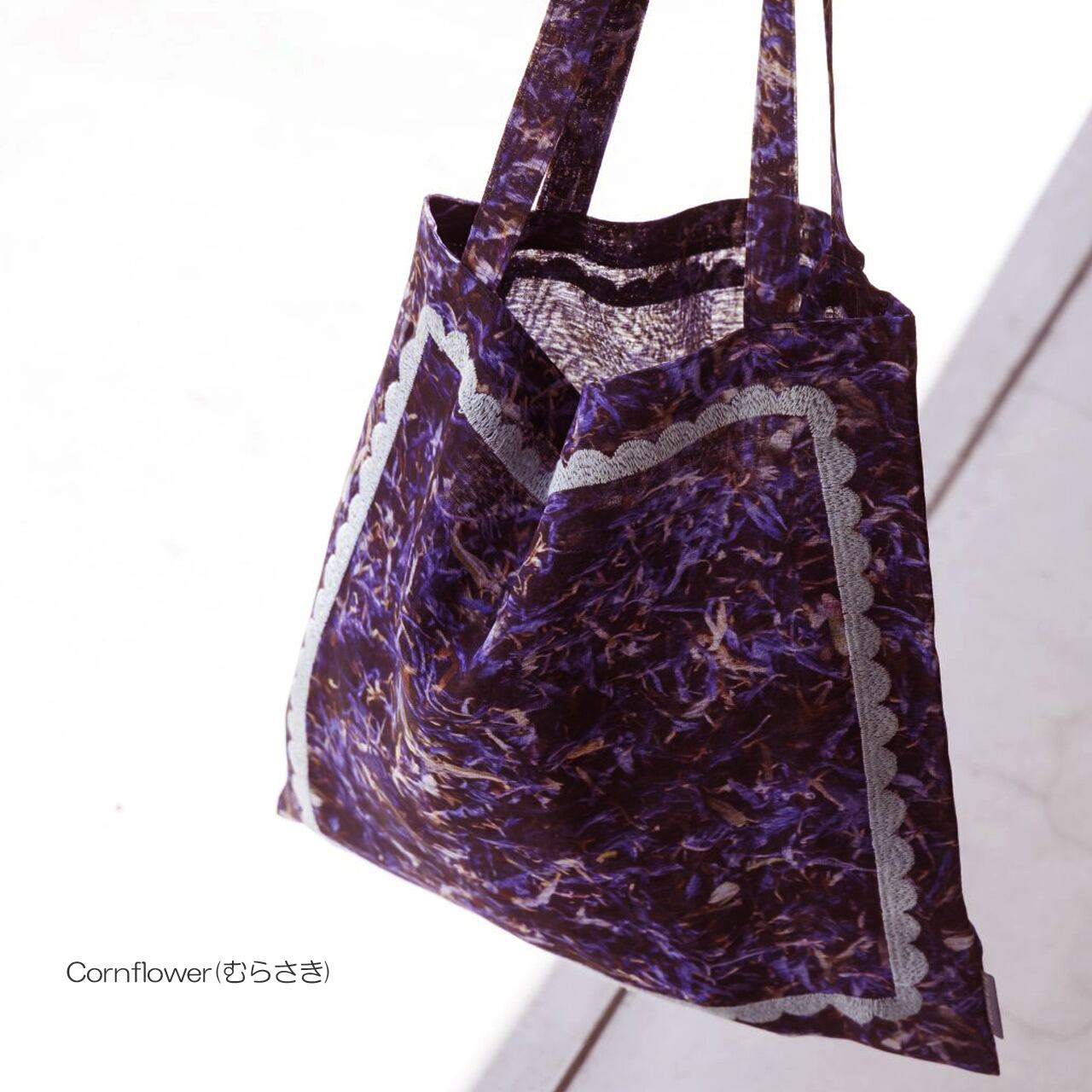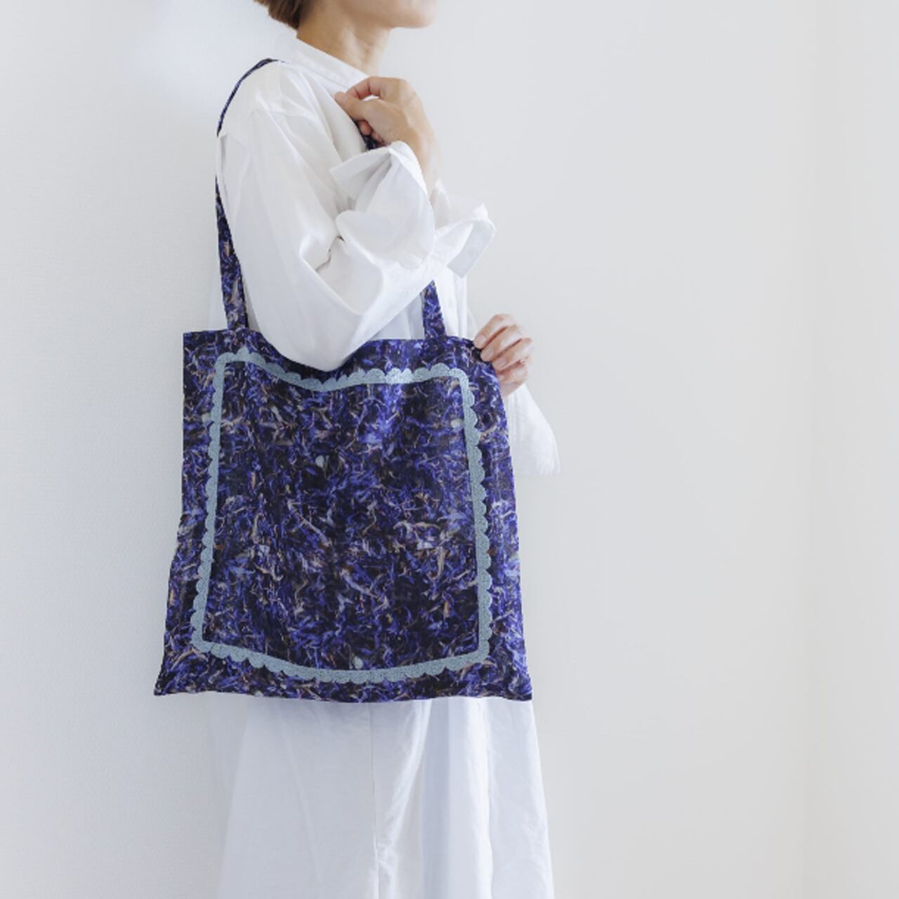 薄くて軽いボイル生地を2枚重ね、空気を含ませながらふんわり縫い上げたトートバッグ。